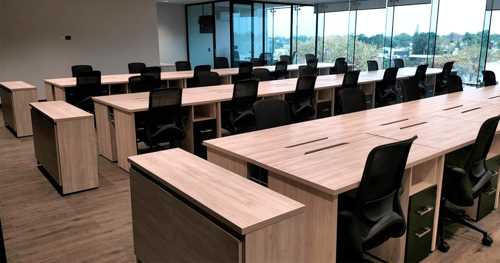 Diseñada para entornos más dinámicos, la línea Cowork promueve la interacción y la creatividad. Sus configuraciones abiertas, con mesas tipo bench o estaciones grupales, permiten crear espacios donde la comunicación es fluida y las ideas se comparten. Perfecta para startups, agencias o áreas de trabajo colaborativo.