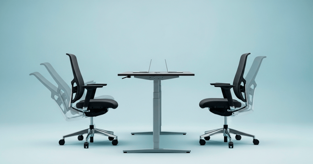 - El tipo de silla. Una silla con un gran rango de regulación puede compensar diferencias de estatura importantes. Una silla fija o con rango limitado no puede. Si la silla no se ajusta lo suficiente, el escritorio tiene que hacerlo — y si tampoco lo hace, alguien en el equipo va a trabajar en una postura que no le es adecuada.